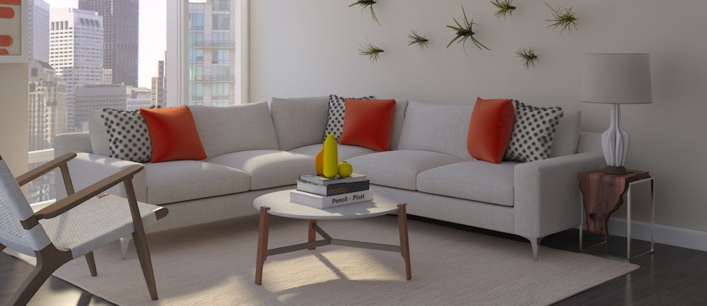 We’ve been doing some work with Rob Royer, founder of the Chicago-based company, Interior Define. They make high-quality, custom, affordable sofas and sectionals. We’re big fans of their work and have used their products in several customer designs. We even have one of their sofas in our San Francisco office! Since customization is key to their offering, it’s difficult for them to convey all the product possibilities on their website. Ideally, they would show their products in actual living spaces, but that’s expensive and time-consuming.